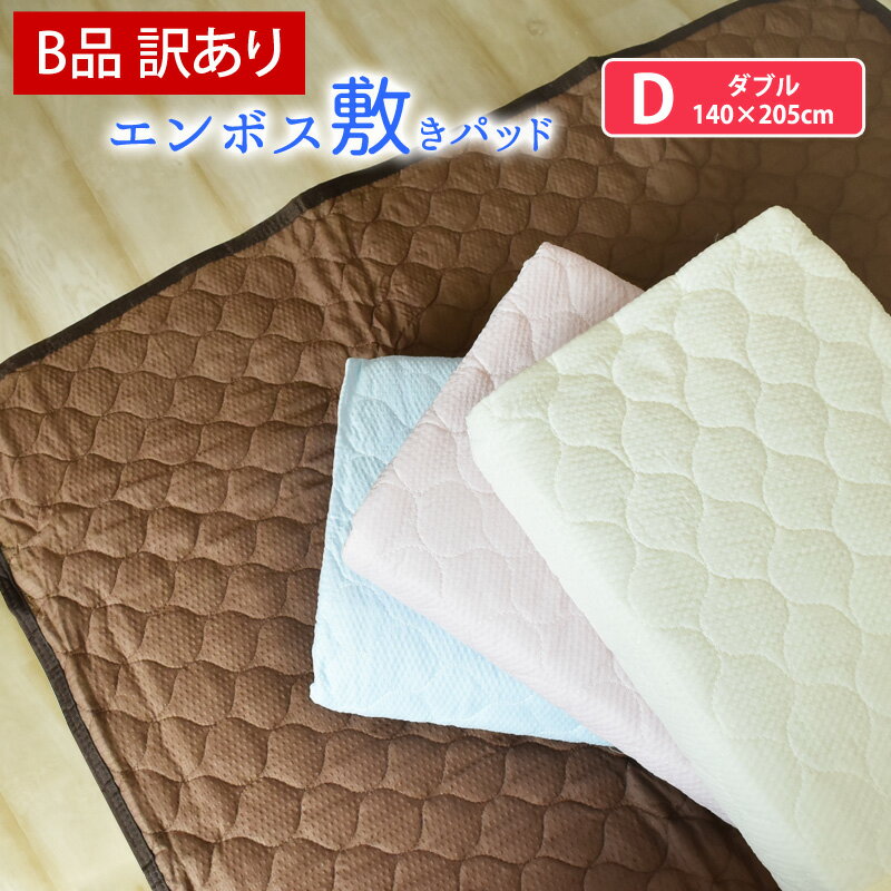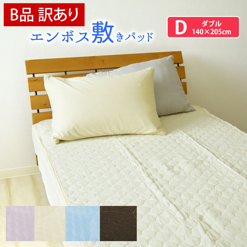【B品/訳あり】敷きパッド ダブル 無地 エンボス敷きパッド 140×205cm ベッド・敷き布団用 夏用 ベッドパッド ベッドパット 敷パッド 敷きパット 敷パット 丸洗いok 四隅ゴム付 さらさら 爽快 涼感 洗える D 《6.S2》