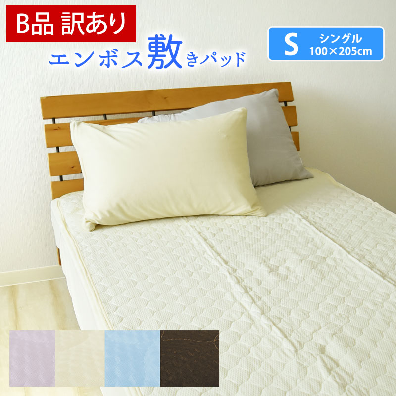 【B品/訳あり】敷きパッド シングル 無地 エンボス敷きパッド 100×205cm ベッド・敷き布団用 夏用 ベッドパッド ベッドパット 敷パッド 敷きパット 敷パット 丸洗いok 四隅ゴム付 さらさら 爽快 涼感 洗える S 《6.S2》