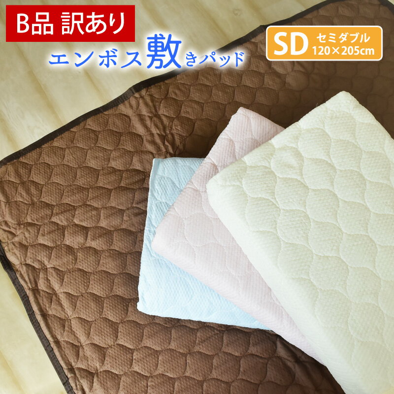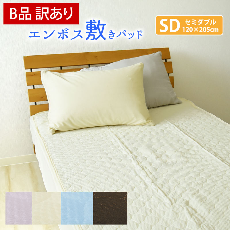 【B品/訳あり】敷きパッド セミダブル 無地 エンボス敷きパッド 120×205cm ベッド・敷き布団用 夏用 ベッドパッド ベッドパット 敷パッド 敷きパット 敷パット 丸洗いok 四隅ゴム付 さらさら 爽快 涼感 洗える SD 《6.S2》
