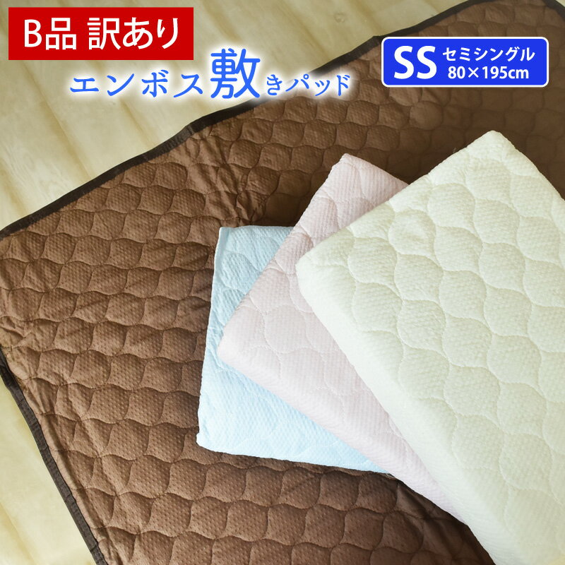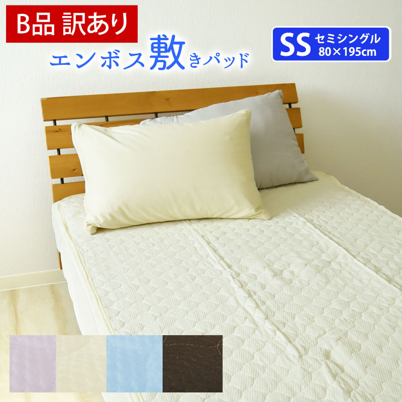 【B品/訳あり】敷きパッド セミシングル 無地 エンボス敷きパッド 80×195cm ベッド・敷き布団用 夏用 ベッドパッド ベッドパット 敷パッド 敷きパット 敷パット 丸洗いok 四隅ゴム付 さらさら 爽快 涼感 洗える SS 《1.S2》