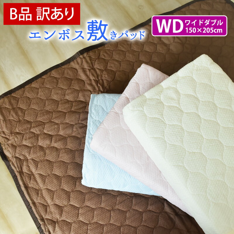 【B品/訳あり】敷きパッド ワイドダブル 無地 エンボス敷きパッド 150×205cm ベッド・敷き布団用 夏用 ベッドパッド ベッドパット 敷パッド 敷きパット 敷パット 丸洗いok 四隅ゴム付 さらさら 爽快 涼感 洗える WD 《1.S2》