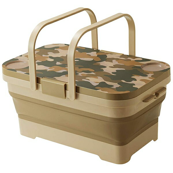 ISETO (伊勢藤) ピクニックバスケット カーキ 約幅46.3×奥行29×高さ21.4cm 折りたたみバスケット&テーブル Milargo(ミラーゴ) I-582