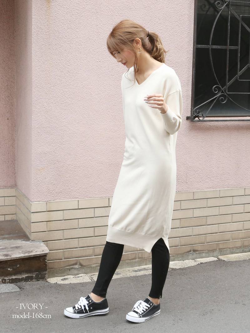 抜け感を出してくれる絶妙なVネックとすとんと落ちるIラインシルエットが、大人のこなれたカジュアルスタイルにピッタリな長袖ワンピ♪