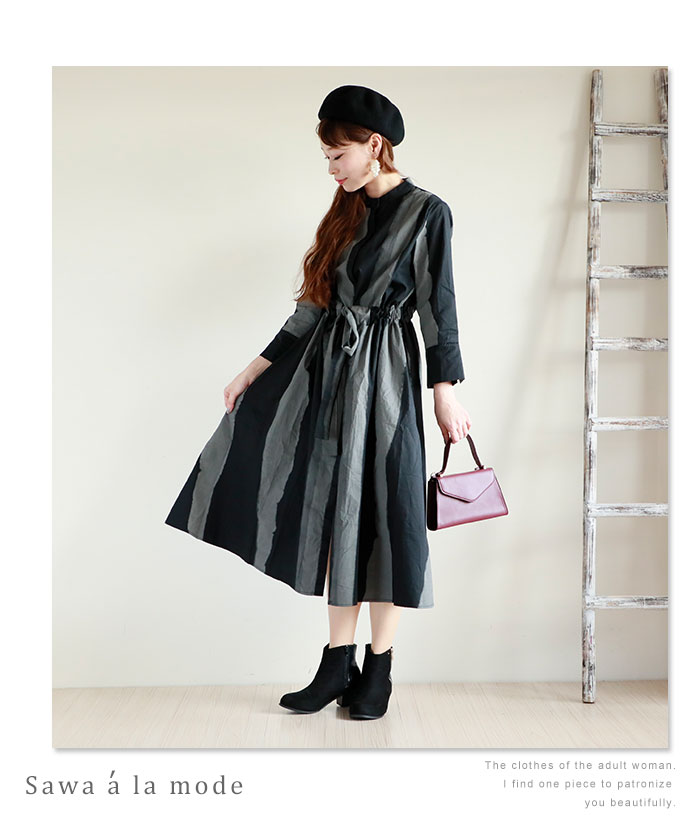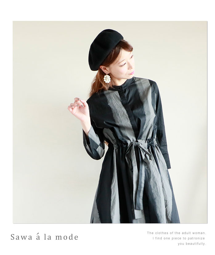 さらりと着心地、グレーとブラックのモノトーンが、どこか緩やかに表現されたワンピース。